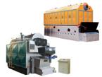 生物质导热油炉,包括燃烧生物质燃料的炉膛,炉膛上方安装导热油本体,其外形为一圆筒形炉壁,炉壁内部设置用于烟气与导热油进行热交换的内盘管和外盘管,炉膛的入料口安装螺旋进料机,螺旋进料机的入口连通炉前炉仓,炉膛下方设置往复炉排,导热油本体上部设置烟室,烟室的出烟口连通空气预热器,炉膛侧壁连通一次风口和二次风口。本实用新型结构简单,燃烧室的辐射受射面大,锅炉热效率高。